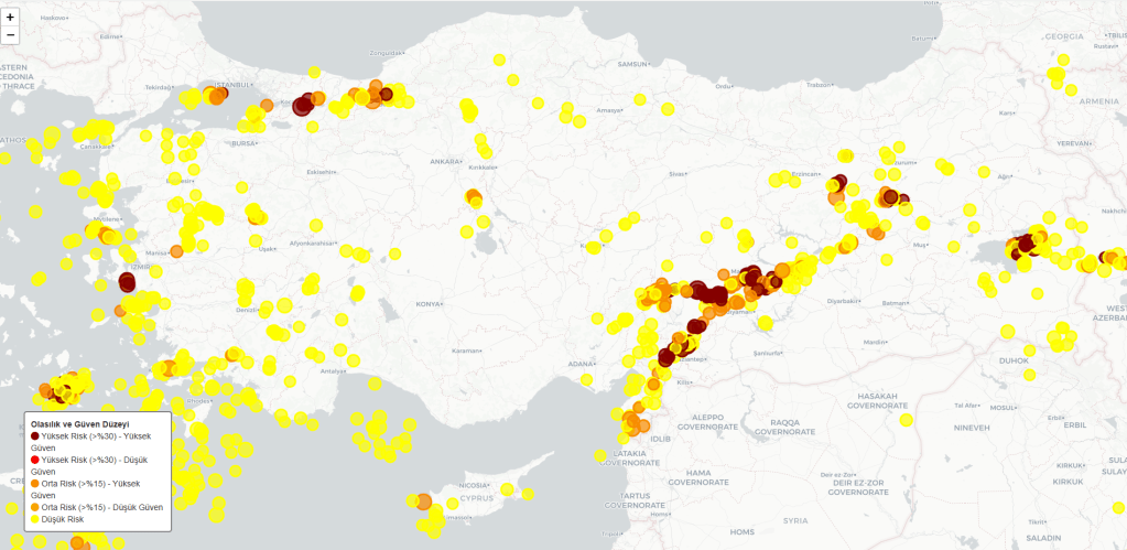 Not: “Veri Yetersiz” ibaresi, ilgili depremin çevresinde yeterli sismik geçmiş verisi bulunamadığı için risk hesaplanamadığını belirtir.